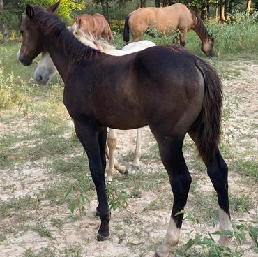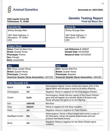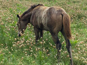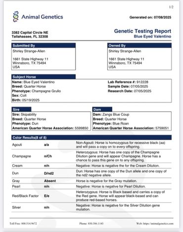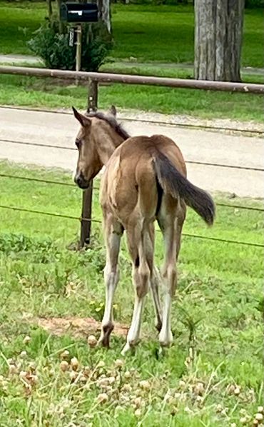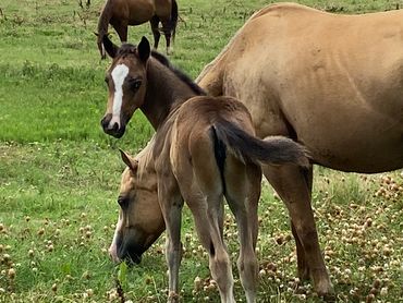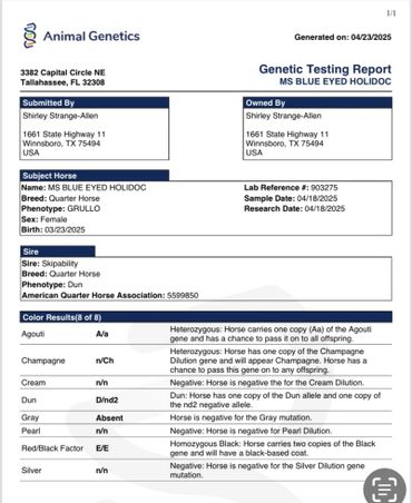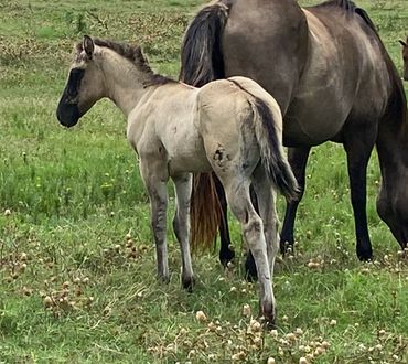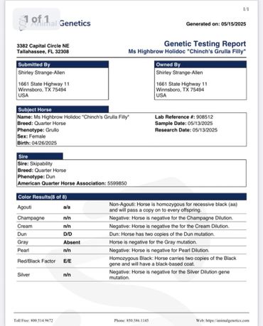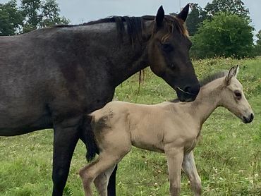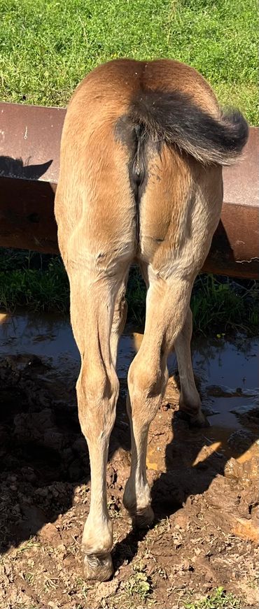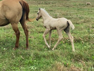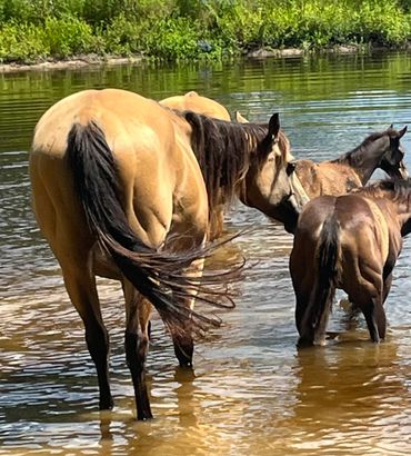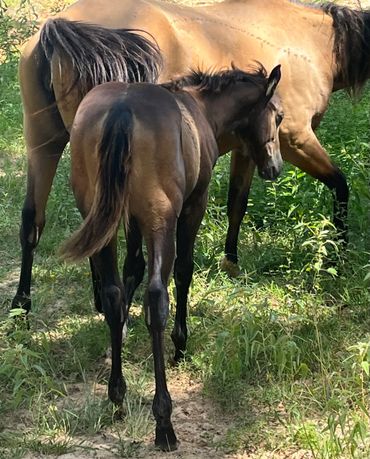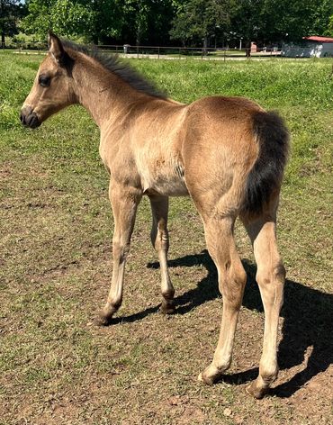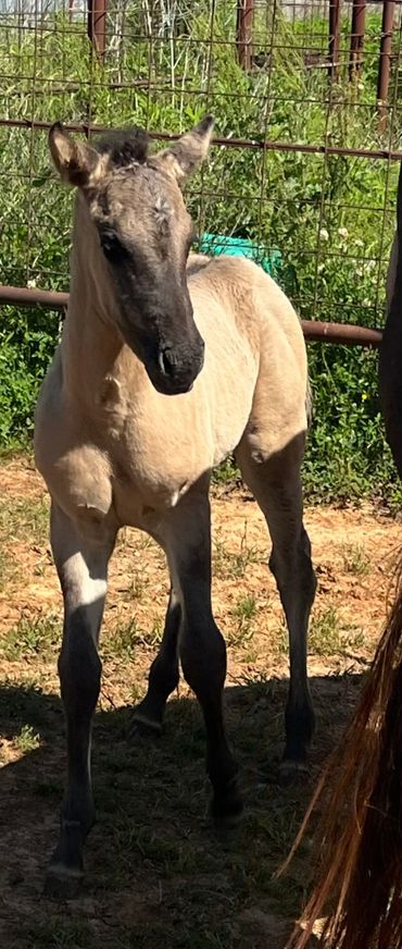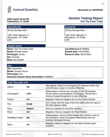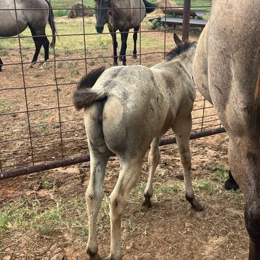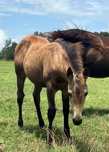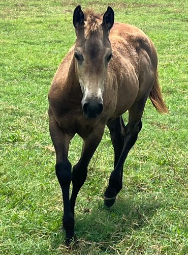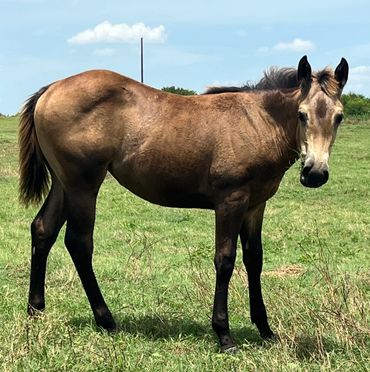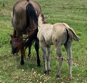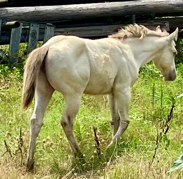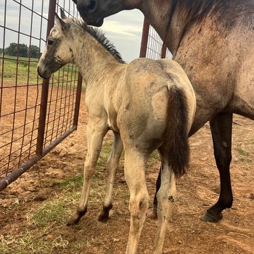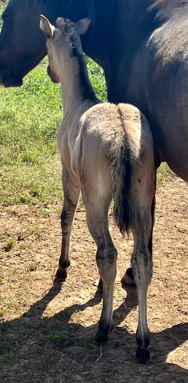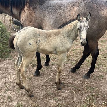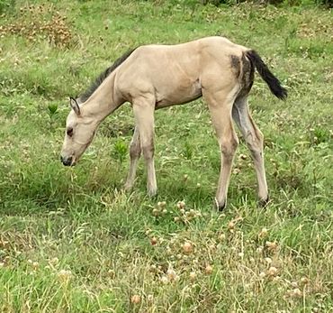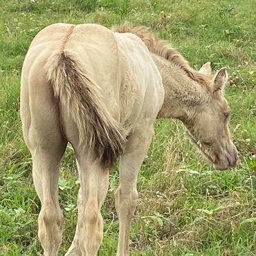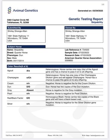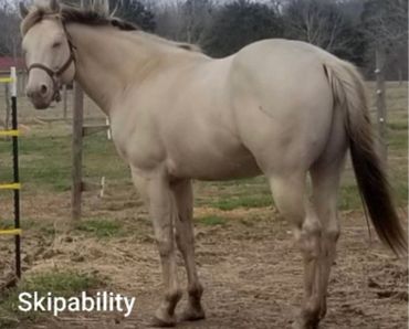 Skipability is a 2014 champagne dun AQHA stallion. He is homozygous black and homozygous dun. Panel clear on all health issues. He is a producer of color and athletic ability in many performance areas including roping, cutting, barrel racing, trail, pleasure, and all around.
