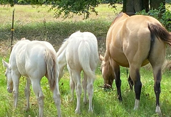 She has a beautiful palomino filly by our cremelllo stallion, SOME THING GHOSTLY that can be registered PTHA.